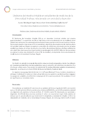 Congreso Internacional en Salud Pública y Desastres Universidad Autónoma de Chiapas Síndrome de Intestino Irritable en estudiantes de medicina de la Universidad Anáhuac relacionado con ansiedad y depresión Acosta Félix Miguel Angel, Velasco Marín Romina Estefany, Trujillo Niurka* Universidad Anáhuac Mayab-Escuela de Medicina, * niurka.trujillo@anahuac.mx Palabras clave: Síndrome de Intestino Irritable, Escala de Beck, ROMA III. Introducción El Síndrome del Intestino Irritable (SII) es un desorden funcional crónico del sistema gastrointestinal . La aparición del SII se manifesta como una alteración de la motilidad, dolor (1) abdominal, cambios en la consistencia de las deposiciones y aumento de frecuencia de las mismas. Numerosos estudios relacionan al SII con ansiedad y depresión, los estudiantes de medicina de la Universidad Anáhuac Mayab se exponen a este tipo de ambientes, provocado por las jornadas académicas diarias, el tiempo de estudio, el aumento de prácticas médicas y la baja cantidad de actividad física, hace que exista mayor tendencia para la aparición del SII. El objetivo de este trabajo es analizar si existe una correlación entre el SII, la ansiedad y la depresión en los estudiantes de medicina de la Universidad Anahuac Mayab. Métodos Se diseñó un estudio transversal, descriptivo, observacional, comparativo, donde fue utilizado un muestreo probabilístico de tipo polietápico para la selección de individuos de edad de 20 a 25 años en ambos sexos. Para evaluar la relación del SII con las diferentes variables de ansiedad y depresión, se utilizaron el criterio ROMA III, Escala de Bristol y Escala de Beck. Se empleó el programa EpiInfo Versión 7.1.3.10® para Windows®. Para el análisis estadístico se utilizaron medidas de tendencia central y dispersión para las variables cuantitativas. Para comparar los grupos de variables y los diferentes subgrupos de SII se usó la prueba de Chi cuadrada. El nivel de signifcancia se consideró <0.05. Resultados Se analizaron un total de 451 alumnos, en un período de Enero a Agosto del 2013, se encontró que un 92.46% presentó SII de acuerdo a los criterios de ROMA III y un 25.94% presentó ansiedad y/o depresión de acuerdo a la Escala de Beck. El 10.64% mostró SII relacionado con ansiedad y depresión, 56.25% de éstos alumnos tuvieron 21 años y la mayoría fue mujer. De lo anterior se deduce que es poca la relación que existe entre la depresión y ansiedad en relación al SII en los estudiantes de medicina de la Universidad Anahuac-Mayab, sin embargo este 81.82% restante 32 Tuxtla Gutiérrez • Chiapas • México Publicación anual