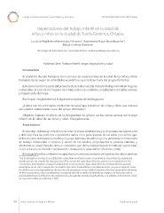 Congreso Internacional en Salud Pública y Desastres Universidad Autónoma de Chiapas Repercusiones del trabajo infantil en la salud de niñas y niños en la ciudad de Tuxtla Gutiérrez, Chiapas. Lucrecia Magdalena Hernández Pilicastro , Austreberta Nazar Beutelspacher , 1 1 Rafael Jiménez Martínez 1 1 El Colegio de la Frontera Sur. Correo electrónico: mahernandez@ecosur.edu.mx; Palabras clave: Trabajo infantil, riesgos (exposición) y salud Introducción El propósito de este trabajo es dar a conocer las repercusiones en la salud de las niñas y niños trabajadores/as según las actividades económicas que realizan fuera del grupo doméstico. Esta ponencia forma parte del proyecto de tesis de maestría titulado: Trabajo infantil en hogares vulnerables. El caso de los hogares de inmigrantes a las ciudades, encabezados por jefes varones y mujeres jefas de hogar. Por lo que, nos planteamos la siguiente pregunta de investigación: ¿Cuáles son los principales problemas de salud que presentan las niñas y niños que realizan actividades remuneradas fuera del grupo doméstico? Objetivo: Explorar el efecto de la desigualdad de género en las consecuencias del trabajo infantil en la salud de las niñas y niños trabajadores/as. Antecedentes El abordaje del trabajo infantil oscila entre la visión abolicionista y la de promoción (protección y defensa). Para los primeros el problema radica en la participación de las niñas y los niños, que deberían estar dedicados al estudio y el juego. Además consideran que su presencia en el mercado de trabajo menoscaba el empleo y salario de los adultos, perpetuando la pobreza extrema, y afectando su salud. Para los otros se considera que dicho trabajo bajo determinada supervisión, es un vehículo esencial de “socialización , formación y autoestima”. (Pucheta, 2006) 1 El trabajo infantil es un fenómeno que abarca numerosos sectores de la población, observándose 1 En Sociología las teorías de socialización, concebían la infancia como un periodo de dependencia, alejada del mundo social más amplio. No obstante, los niños no son del todo dependientes, pasivos o no productivos. Por el contrario, desempeñan un papel fundamental en la economía. Aquí, dependencia e independencia pueden entenderse tanto como categorías contradictorias como inseparables y complementarias, ya que en algunos casos los adultos son más dependientes de los niños. El proceso por cuyo medio la persona humana aprende e interioriza, en el trascurso de su vida, los elementos socioculturales de su medio ambiente, los integra a la estructura de su personalidad, bajo la infuencia de experiencias y de agentes sociales signifcativos, y se adapta así al entorno social en cuyo seno debe vivir (Rocher, 1990). 34 Tuxtla Gutiérrez • Chiapas • México Publicación anual
