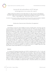 Congreso Internacional en Salud Pública y Desastres Universidad Autónoma de Chiapas Asociación del polimorfsmo rs5275 del gen ciclooxigenasa-2 con cáncer de mama Martínez Moreno César Manuel, Ocaña Hernández Ana Julia, Sánchez González Roberto 1 1 ,2,3 Alejandro, Cordero Chaclan Concepción, Canseco Ávila Luis Miguel Domínguez Arrevillaga 2 2 ,3 2,3 Sergio, Lugo Trampe Ángel Trujillo Murillo Karina del Carmen. 1,2 2 1 Facultad de Ciencias Químicas, UNACH. Hospital Regional de Alta Especialidad Ciudad Salud (HRAECS). CEMESAD- 3 Nodo Tapachula, UNACH. Tapachula, Chiapas. E-mail: kary_trujillo@hotmail.com Palabras clave: Cáncer de mama, Polimorfsmo, Ciclooxigenasa-2 Introducción Actualmente, el cáncer de mama (CaMa) es el cáncer más frecuente y la primera causa de muerte oncológica entre las mujeres. En México sólo entre el 5-10% de los casos de CaMa son diagnosticados en la fase inicial de la enfermedad comparado con el 50% en Estados Unidos; situación que difculta en buena medida la efcacia de la terapia amén de incrementar el costo del mismo (1). En nuestro país, desde el 2006 el CaMa es causante de un mayor número de defunciones con respecto al cáncer cervicouterino (CaCu) (2). Entre los hallazgos recientes a nivel mundial destacan los estudios de asociación a escala genómica en los cuales se han identifcado factores genéticos de riesgo asociados con esta neoplasia; uno de ellos es el polimorfsmo (SNP) rs5275 (8473 T>C) del gen Ciclooxigenasa-2 (COX-2); localizado en la región 3’UTR del gen (3,4). COX cataliza la síntesis de prostaglandinas (PG) a partir del ácido araquidónico. Hay dos isoformas de COX, denominadas COX-1 y COX-2; la expresión de esta última es inducible en respuesta a una variedad de estímulos mitogénicos e infamatorios promoviendo niveles elevados de PGs en tejidos infamados y neoplásicos. Existen evidencias que sugieren que COX-2 juega un papel importante en carcinogénesis (5). Con base en lo anterior, se analizó la frecuencia del SNP rs5275 del gen COX-2 en un grupo de pacientes con CaMa que acuden al Hospital Regional de Alta Especialidad Ciudad Salud (HRAECS) y en un grupo control. Métodos Se colectaron 89 biopsias de pacientes con CaMa (la edad promedio fue 49 ± 13 años) del Servicio de Patología del HRAE “Ciudad Salud”; que concentra la mayor parte de la población femenina del estado de Chiapas. Se colectaron datos demográfcos y clínicos. El estudio se realizó de acuerdo con los lineamientos de las buenas prácticas clínicas. A partir de las biopsias se aisló el DNA total empleando el estuche comercial NucleoSpin FFPE DNA (Macherey Nagel); el cual fue sujeto a un control de calidad mediante la amplifcación de un fragmento del gen de B-Globina (262 pb). También, se incluyeron 95 muestras de sangre periférica de mujeres sin la presencia de nódulo linfático; confrmado por exploración física y ultrasonido obtenidas de la población 44 Tuxtla Gutiérrez • Chiapas • México Publicación anual