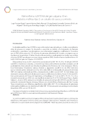 Congreso Internacional en Salud Pública y Desastres Universidad Autónoma de Chiapas Polimorfsmo rs2975760 del gen calpaina 10 en diabetes mellitus tipo 2: un estudio de casos y controles Lugo Trampe Ángel, Laparra Gómez Mario Manuel, Chang Rueda Consuelo, Canseco Ávila Luis 1 2 1 1,3 Miguel, Domínguez Arrevillaga Sergio, y Trujillo Murillo Karina del Carmen. 1,3 3,4 1 CEMESAD-Nodo Tapachula, UNACH. Doctorado en Ciencias para la Salud, DES Ciencias de la Salud. Hospital 3 2 Regional de Alta Especialidad Ciudad Salud (HRAECS). Facultad de Ciencias Químicas, UNACH. Tapachula, Chiapas. 4 E-mail: lugoweb_2@hotmail.com Palabras clave: Diabetes mellitus, Polimorfsmo, Calpaína 10 Introducción La diabetes mellitus tipo 2 (DM2) es una enfermedad caracterizada por niveles anormalmente altos de glucosa en sangre. Su desarrollo y aparición es debido a la interacción de factores ambientales y genéticos, considerandose una enfermedad compleja y multifactorial. Se estima que la DM2 afecta cerca de 150 millones de personas alrededor del mundo, y se espera que se duplique en los próximos 20 años. Estudios de asociación a escala genómica revelan que existen al menos 38 SNP que otorgan un mayor riesgo a padecer DM2. Uno de ellos es el polimorfsmo -44 (rs2975760) del gen de Calpaína 10 (CAPN10). Dhanasekaran et al., en 2011, examinó la asociación de los SNP -44,-43,-19 y -63 del gen CAPN10 con DM2 y resistencia a insulina, y encontró que estos polimorfsmos no están asociados con el padecimiento. Esto coincide con estudios en poblaciones Británicas, Oji-Cree, Samoanos, Chinos, Euro-Americanos, Finlandeses, Suecos, Daneses y Japoneses. Cassell et al., en 2002 menciona que un estudio previo realizado en el Sur de la India falló en la búsqueda de asociación de estos SNP’s de manera individual con DM2, a excepción de un alelo raro del SNP -63. Este último tuvo asociación con una alteración de glucosa en ayuno y tolerancia a la misma. Evans JC et al, en 2001, hizo construcciones de 4 locus de haplotipos; y el haplotipo 2111 de los SNP’s -44,-43,-19 y -63, y encontró asociación con DM2 con una signifcancia nominal (P=.014). Del Bosque Plata L, Aguilar Salinas C., et al, en 2003, realizaron un estudio de asociación del gen de CAPN10 con DM2, en una población mestiza de Orizaba, Veracruz, México y en otra de México-Americanos de Starr County, Texas, encontraron una diferencia signifcativa entre alelo SNP -44 y la frecuencia de genotipos entre sujetos diabéticos y no diabéticos. El alelo SNP -44, fue asociado con un riesgo incrementado de padecer DM2, con un OR de 2.72. Con base en lo anterior se determinó la frecuencia y asociación del polimorfsmo rs2975760 del gen CAPN10 con DM2 en una muestra de la población del Estado de Chiapas. Métodos Se analizaron 684 muestras de sangre periférica de sujetos de la población chiapaneca: 335 sujetos diabéticos y 349 sujetos controles sanos, pareados por edad y género. Todos los experimentos se realizaron en el Laboratorio de Investigación del CEMESAD – Nodo Tapachula, durante los años 2013 48 Tuxtla Gutiérrez • Chiapas • México Publicación anual