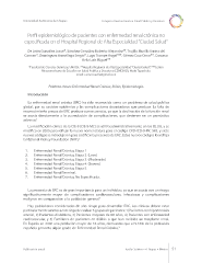 Universidad Autónoma de Chiapas Congreso Internacional en Salud Pública y Desastres Perfl epidemiológico de pacientes con enfermedad renal crónica no especifcada en el Hospital Regional de Alta Especialidad “Ciudad Salud” De León González Josué*, Sánchez González Roberto Alejandro**, Trujillo Murillo Karina del Carmen*, Domínguez Arrevillaga Sergio*, Lugo Trampe Ángel***, Gómez Cruz Omar**, Canseco Ávila Luis Miguel** *Facultad de Ciencias Químicas, UNACH, **Hospital Regional de Alta Especialidad “Ciudad Salud”, ***Centro Mesoamericano de Estudios en Salud Publica y Desastres (CEMESAD), Nodo Tapachula. Email: cansecoavila@gmail.com Palabras claves: Enfermedad Renal Crónica, Riñón, Epidemiologia. Introducción La enfermedad renal crónica (ERC) ha sido reconocida como un problema de salud publica global, por su carácter epidémico y las complicaciones devastadoras que produce. La falta de reconocimiento precoz de ERC produce consecuencias, ya que la declinación de la función renal se asocia directamente a la acumulación de complicaciones, que devienen en un pronóstico adverso. 1 La modifcación clínica de la CIE-9 (CIE-9-MC) se utiliza administrativamente en los EE.UU. y se modifco en 2005 para refejar la nueva nomenclatura para el código CKD-ICD-9-MC 585, y siete nuevos códigos se introdujeron para codifcar la presencia de ERC. Estos nuevos códigos los refeja la National Kidney Foundation (NKF). 2 1. Enfermedad Renal Crónica, Etapa 1 2. Enfermedad Renal Crónica, Etapa 2. (Leve) 3. Enfermedad Renal Crónica, Etapa 3. (Moderado) 4. Enfermedad Renal Crónica, Etapa 4. (Severo) 5. Enfermedad Renal Crónica, Etapa 5. 6. Enfermedad Renal Terminal. 7. Enfermedad Renal Crónica, No Especifcada. La presencia de ERC es de gran importancia para un individuo, ya que se asocia con un riesgo signifcativamente mayor de complicaciones cardiovasculares, infecciosas y complicaciones malignas en comparación a la población general. 4 Hay poblaciones consideradas de alto riesgo para desarrollar ERC. Los clínicos deben estar particularmente atentos a este riego de evaluar 5 grupos de pacientes: 1) Pacientes con hipertensión arterial, 2) Pacientes diabéticos, 3) Pacientes mayores de 60 años, 4) Pacientes con enfermedad cardiovascular, y 5) Familiares de pacientes en diálisis o que han recibido un trasplante renal. En España en 2008 una población mayor de 18 años, demuestra que el 9.16% de la población española presenta algún grado de Enfermedad Renal Crónica. 3 Publicación anual Tuxtla Gutiérrez • Chiapas • México 51