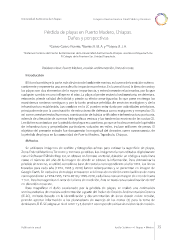 Universidad Autónoma de Chiapas Congreso Internacional en Salud Pública y Desastres Pérdida de playas en Puerto Madero, Chiapas. Daños y perspectivas *Castro-Castro Vicente, *Barrios R. M. A. y **López U. J. H. *Sistemas Costeros del Centro de Biociencias de la Universidad Autónoma de Chiapas. vicente.castro@unach.mx El Colegio de la Frontera Sur. Unidad Tapachula. Palabras clave: Puerto Madero, erosión-sedimentación, línea de costa. Introducción El litoral constituye la parte más dinámica del ambiente marino, es la zona de transición océano- continente y representa una zona de alto impacto económico. En la zona litoral, la línea de costa y las playas son dos elementos de la mayor importancia, y estrechamente relacionados, por lo que cualquier cambio en uno infuye en el otro. La playa al perder material sedimentario, se deteriora, retrocede, pierde calidad de hábitat y pierde su efecto amortiguador, lo que pone en riesgo los ecosistemas costeros contiguos y por lo tanto produce pérdidas de servicios ecológicos y de la infraestructura establecida. Los cambios en la LC pueden estar dado por actividades antrópicas, principalmente por la construcción de estructuras de defensas como espigones y rompeolas (1); así como asentamientos humanos, construcción de bahías artifciales e infraestructura portuaria, además de alteración de cuencas hidrográfcas vecinas y las tendencias erosivas de las costas (2). Los daños económicos por la pérdida de playas es cuantioso, ya que se ha documentado la pérdida de infraestructura y propiedades particulares valuadas en miles, incluso millones de pesos. El objetivo del presente estudio fue documentar la magnitud del desastre, como consecuencia, de la pérdida de playas en la comunidad de Puerto Madero, Tapachula, Chiapas, Métodos Se utilizaron imágenes de satélite y fotografías aéreas para estimar la superfcie de playas, Zona Federal Marítimo Terrestre y terrenos perdidos. Las imágenes fueron editadas digitalmente con el Software ESRI ArcMap 9.2, se obtuvo en formato vectorial, dándole un código a cada línea como el número del año de la imagen de donde se obtuvo la información. Para determinar la pérdida de terreno, se utilizó como línea base de costa la correspondiente al año 1974. Las líneas trazadas para cada año (1974, 1995 y 2010) fueron sobrepuestas y se presentan en imagen de Google Earth. En cada área de trabajo se trazaron seis líneas de medición entre las líneas de costa correspondiente a 1974-1995, 1974-2010 y 1995-2010, cada línea con un margen de error de hasta ± 3 m. Para homogenizar el error de la línea de medición, ésta se trazó con una inclinación de 60° en dirección noroeste. Para magnifcar el daño ocasionado por la pérdida de playas, se realizó una estimación semicuantitativa de erosión-sedimentación a partir del Índice de Erosión-Sedimentación Costera (IE-SC), método basado en la identifcación y documentación de áreas donde existe erosión, permite aportar información a los planeadores de manejo de las costas (3) para la toma de decisiones. El IE-SC asigna un nivel entre 1 y 5, donde 1 corresponde a sitios sin evidencia de erosión- Publicación anual Tuxtla Gutiérrez • Chiapas • México 75